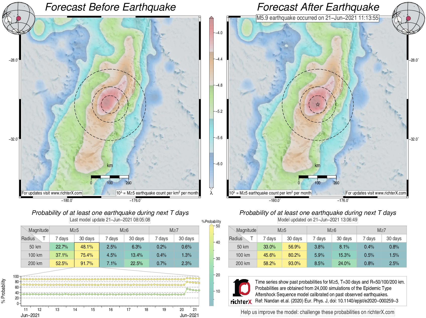 Earthquake Forecast following M5.9 in Kermadec Islands, New Zealand