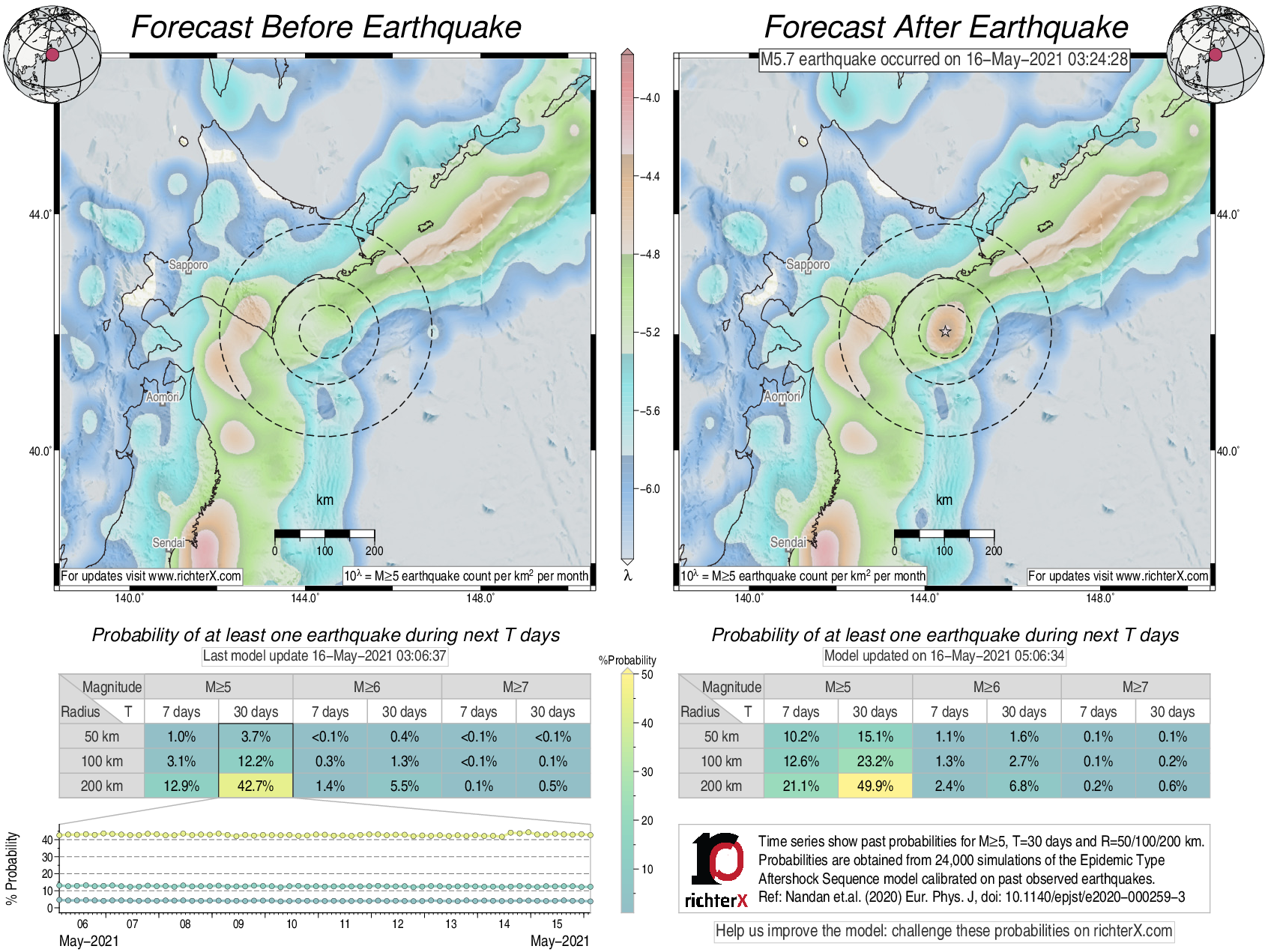Earthquake Forecast following M5.7 in Hokkaido, Japan