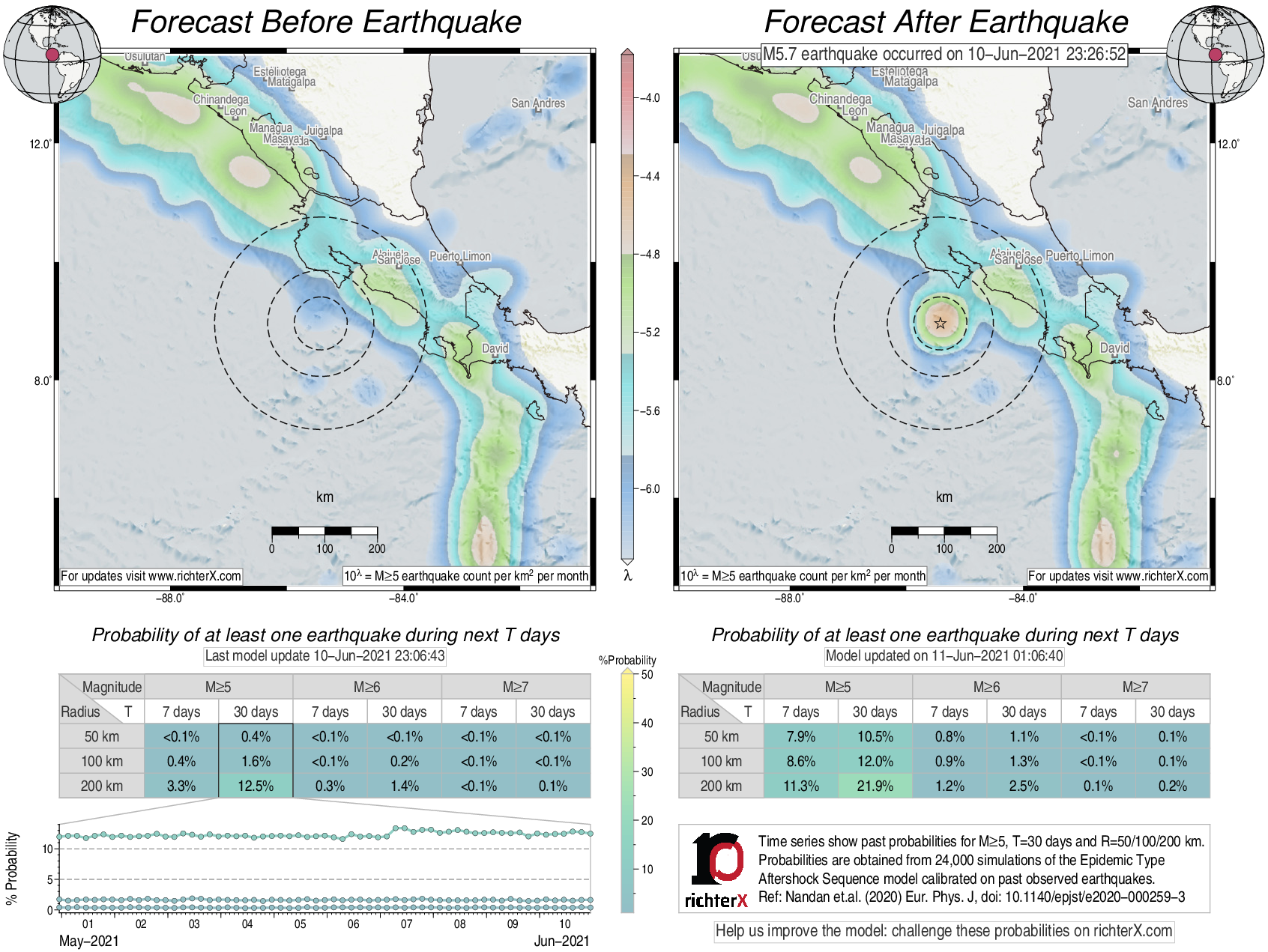 Earthquake Forecast following M5.7 offshore Costa Rica