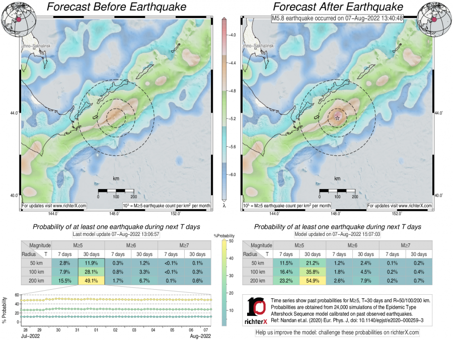 Earthquake Forecast following M5.8 east of the Kuril Islands